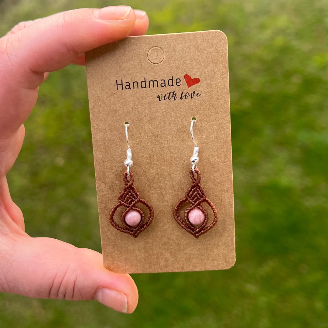 Makramee Ohrringe mit Rhodochrosit